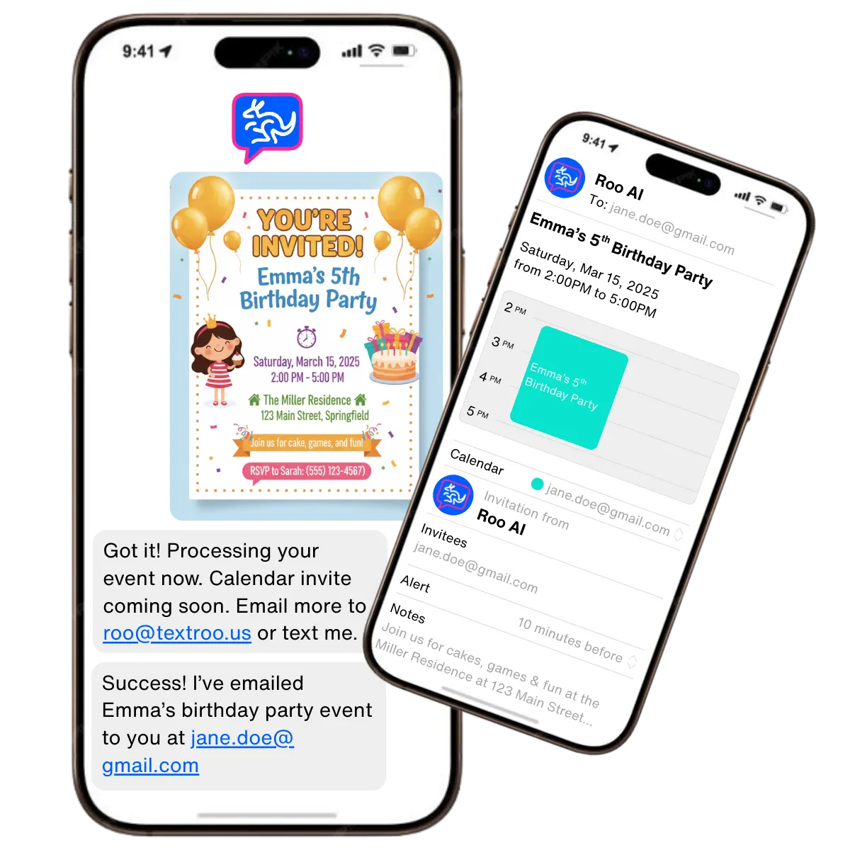 Roo is your text-based helper for shopping deals, memory journals, calendar events, reminders & answers to ANY question. 20,000+ people trust Roo daily. With Roo, you can: